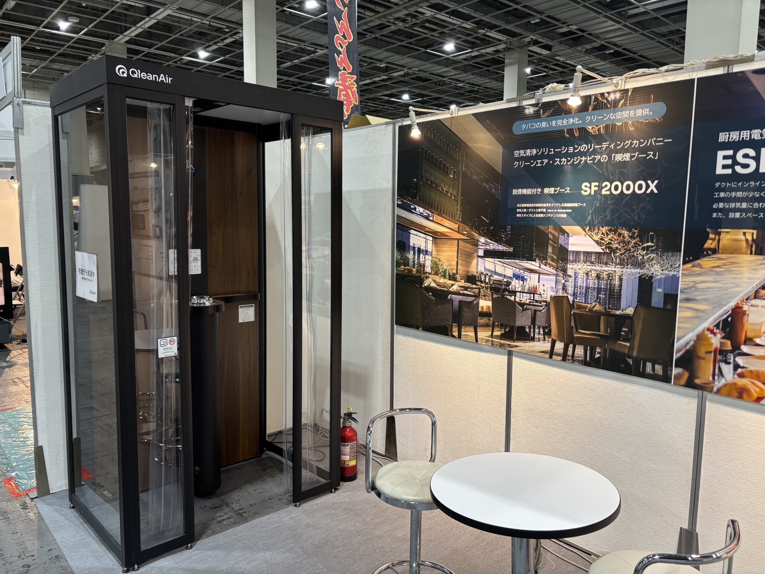 厨房の煙やニオイを除去する電気集塵機の「ESP」と、既に国内でも非常に高い評価を得ている喫煙ブースの「SF-2000X」を展示。